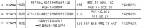 按照文件精神及分配我院的3个任务,教学系统高度重视,组织召开专项会议,严格按照课题申报的12大类积极组织课题申报工作。经学会学术办公室初审,省内外专家评审,2021年度全省共立项课题117项,其中我院杨国峰主持的《基于产教融合、校企合作教材开发的研究与实践—以美容仪器应用教材为例》、刘娟老师主持的《基于推进高等职业教育现代化教师教学能力提升途径研究》及张迎春老师主持的《产教融合优化课程标准的研究—以《建筑制图与识图》课程为例》等3项课题全部顺利通过了评审,获准立项。