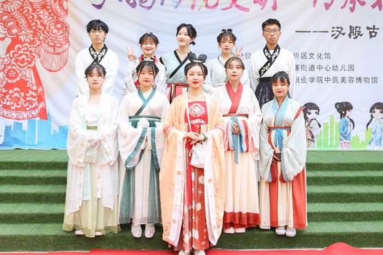 本次活动包括幼儿园实习老师汉服走秀、亲子走秀、幼儿园诗朗诵、非遗项目展示等环节,我院中医美容博物馆王佳丽老师带领9名讲解员参与本次非物质文化遗产活动。