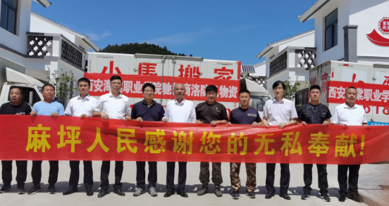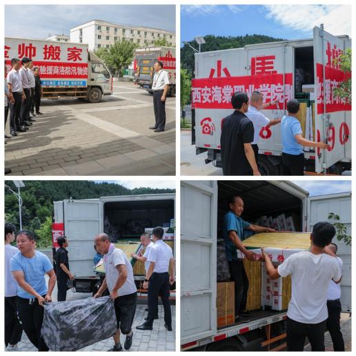 托运、聚集、装车,一切井然有序。7月27日上午10点,由王卓理事长带队,物资车辆和参与慰问的队伍在海棠职业学院冯居秦院长、海棠技师学院吕波院长的慰问和鼓励下,从学院统一出发奔赴灾区。