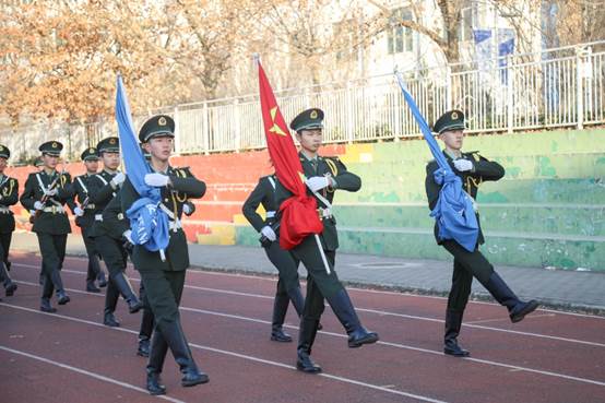 8时30分,迎着朝阳,升旗仪式正式开始。国旗护卫队迈着铿锵有力的步伐,护送国旗走向旗台。伴随着《义勇军进行曲》激昂的旋律响起,鲜艳的五星红旗冉冉升起,现场全体师生面向国旗庄严肃立,行注目礼。