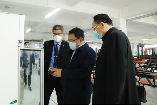 3月15日上午,省教育厅副厅长高岭,职成教处处长付仲锋、科技处处长朱晓冬、校外监管处处长陈国栋、职成教处副处长王静一行5人莅临bat365正版唯一官网调研指导工作,学院院长冯居秦,副院长杨国峰、陈晓东、高琦等院领导陪同。