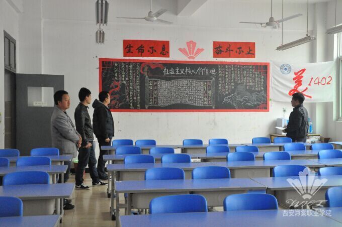 为引导广大师生员工培育和践行社会主义核心价值观,丰富校园文化生活,营造浓厚学习氛围,4月8日下午4时,西安海棠学院中医美容学院举行了以培育和践行社会主义核心价值观为主题的板报观摩评比活动。党委组织部部长贾主任及相关负责人对各班级的黑板报进行了现场观摩和评比。