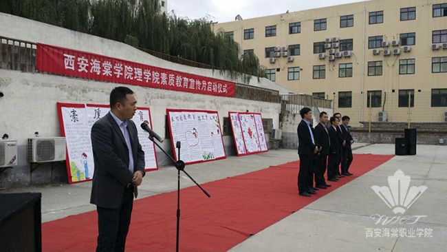 10月15日下午4点,西安海棠学院理学院在排球场举行了素质教育宣传月启动仪式以“树文明新风、立文明意识、做文明大使、展真我风采”为口号的签名活动及主题系列活动。出席仪式的领导有理学院院长尚海洋,学生处副处长,团委书记石博、理学院副院长赵刚刚、中医美容团总支书记康有为、护理学院团总支书记王典、医学技术学院团总支书记王小维、技师学院团工委书记逯小飞、理学院团总支书记王海利及理学院千余名师生。