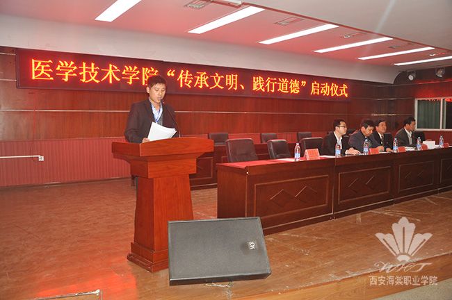 为了进一步加强学生文明行为养成教育工作,引导学生培养良好的行为习惯,10月20日下午,医学技术学院在学术报告厅举行“传承文明、践行道德”启动仪式。出席仪式的有bat365正版唯一官网党委副书记王爱民,学生处处长夏亚兵,医学技术学院院长樊小龙等领导,医学技术学院全体师生。会议由团总支书记王小维主持。