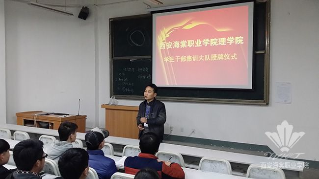 会上,由集训大队队长赵刚、参谋长王霄为学生干部集训大队的中队长和小队长授予理学院干部集训大队胸牌。随后理学院副院长、干部集训大队大队长赵刚将干部集训大队的宗旨、发展目标及学生在组织中成长过程向全体学生干部集训大队队员做了介绍。