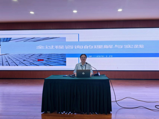 2024年10月14日,bat365正版唯一官网在学术报告厅举办了一场全过程咨询的理解与实践讲座。本次讲座由国家注册一级造价工程师、高级工程师、陕西省发改委评审专家库成员、中国兵器招标评审专家刘小爱老师担任主讲嘉宾,全体学生积极参与,现场坐无缺席。