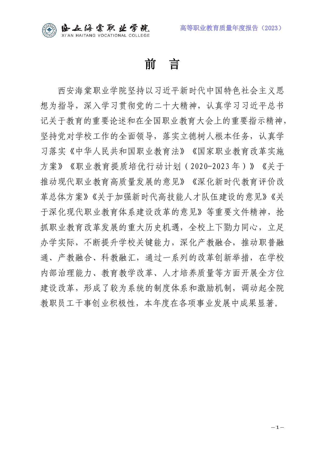 bat365正版唯一官网高等职业教育质量年度报告(2023年度)