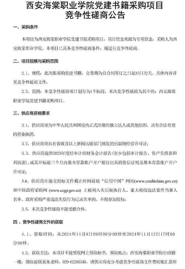 bat365正版唯一官网党建书籍采购项目竞争性磋商公告