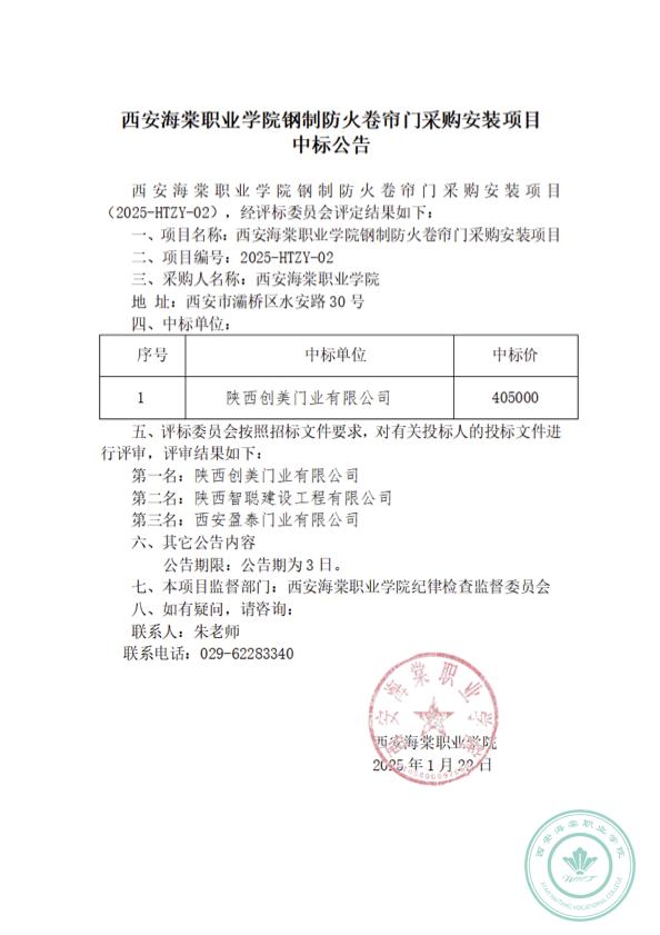 bat365正版唯一官网钢制防火卷帘门采购安装项目中标公告