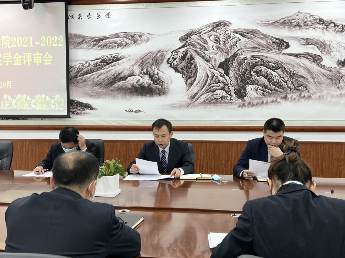 2022年10月7日,学生处学生资助管理中心在行政楼一楼会议室召开了2021-2022学年度国家奖学金院级评审会。由党办、院办、财务处、教务处、学生处、资助中心负责评审工作的老师担任评委,评审会由学生处处长马超主持。